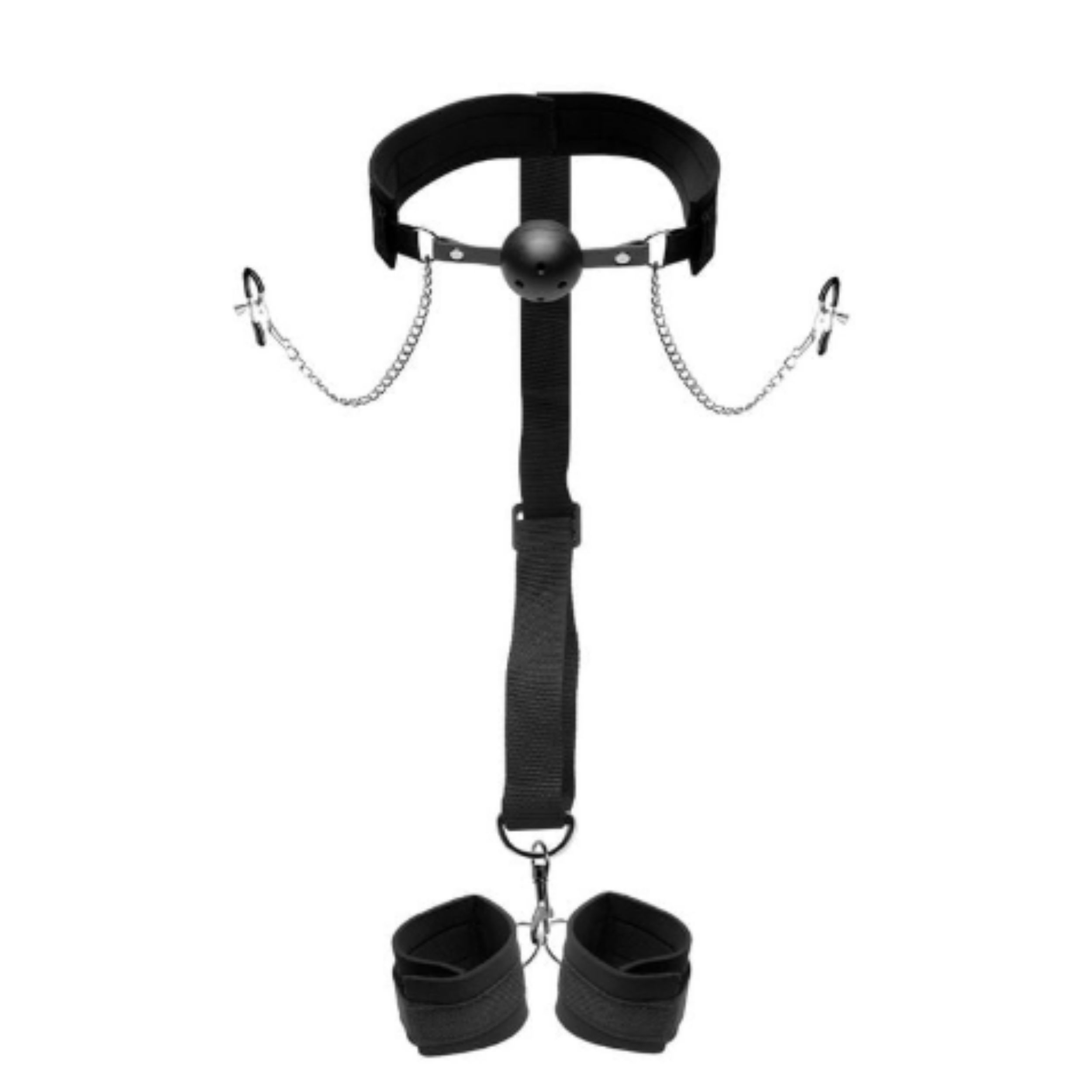 A mordaça garante privacidade e silencia os gemidos mais intensos, enquanto os prendedores de mamilos provocam estímulos arrebatadores. Juntos, esses itens transformam a entrega em uma jornada irresistível de submissão e desejo, elevando a cumplicidade a um novo patamar.