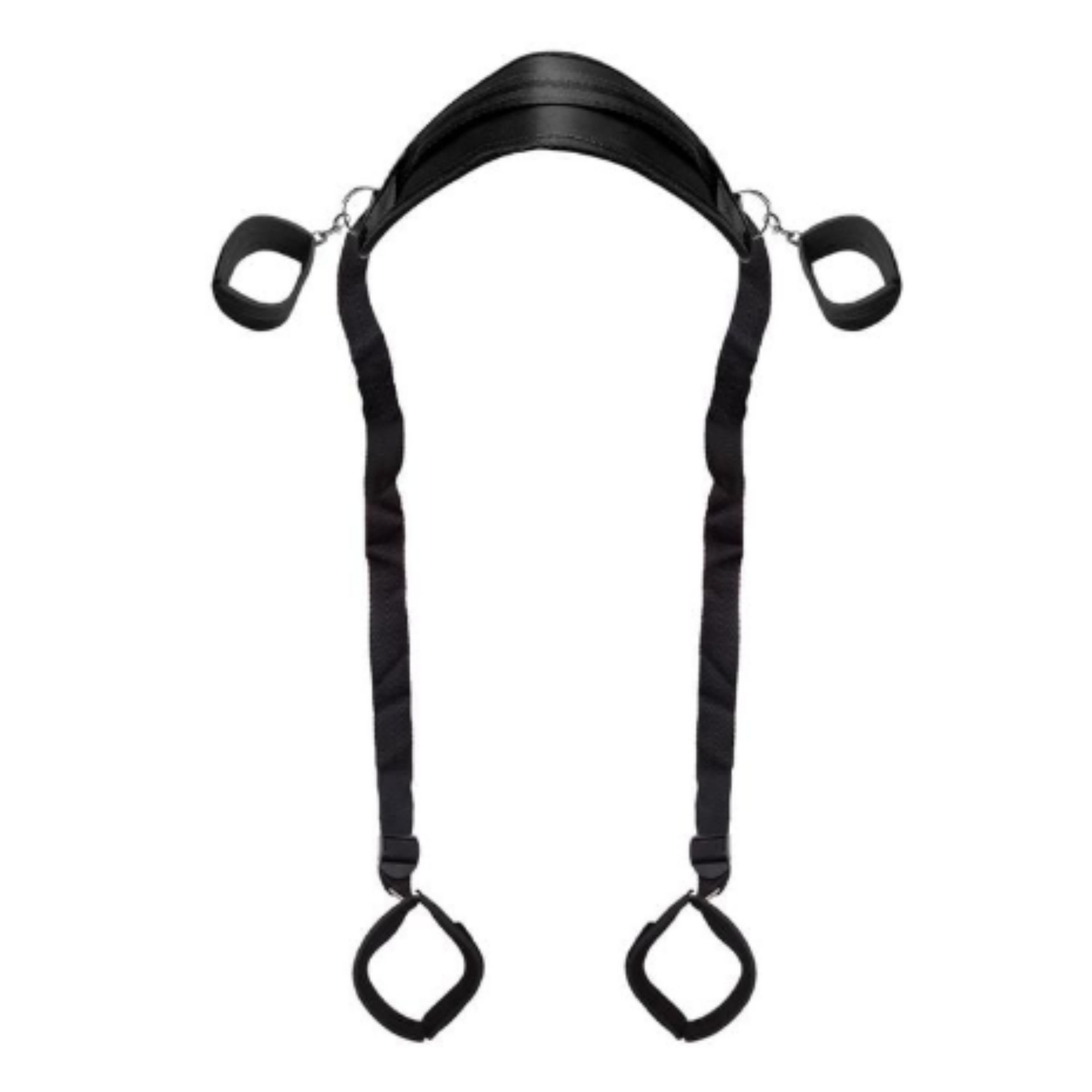 Com estrutura em nylon resistente, o separador mantém as pernas afastadas enquanto as algemas conectadas aos braços proporcionam contenção firme e ajustável. O design ergonômico favorece posições variadas e oferece liberdade para explorar novas formas de conexão a dois.
